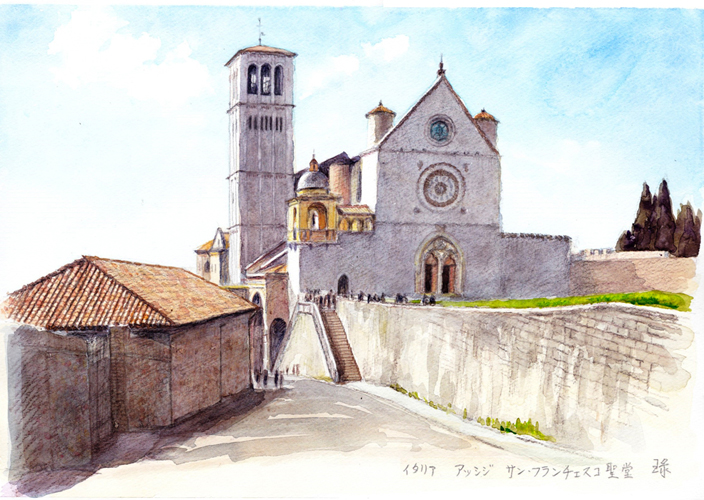 この聖堂は街の入口にあり、ここからの長い緩やかな坂を登って中心地に近づく。高い場所から見下ろしてもこの聖堂は大きい。1997年に発生した大地震で天井が崩落するなど聖堂の建物は大きく損傷してしまったが、2000年にほぼ元の形にもどっている。