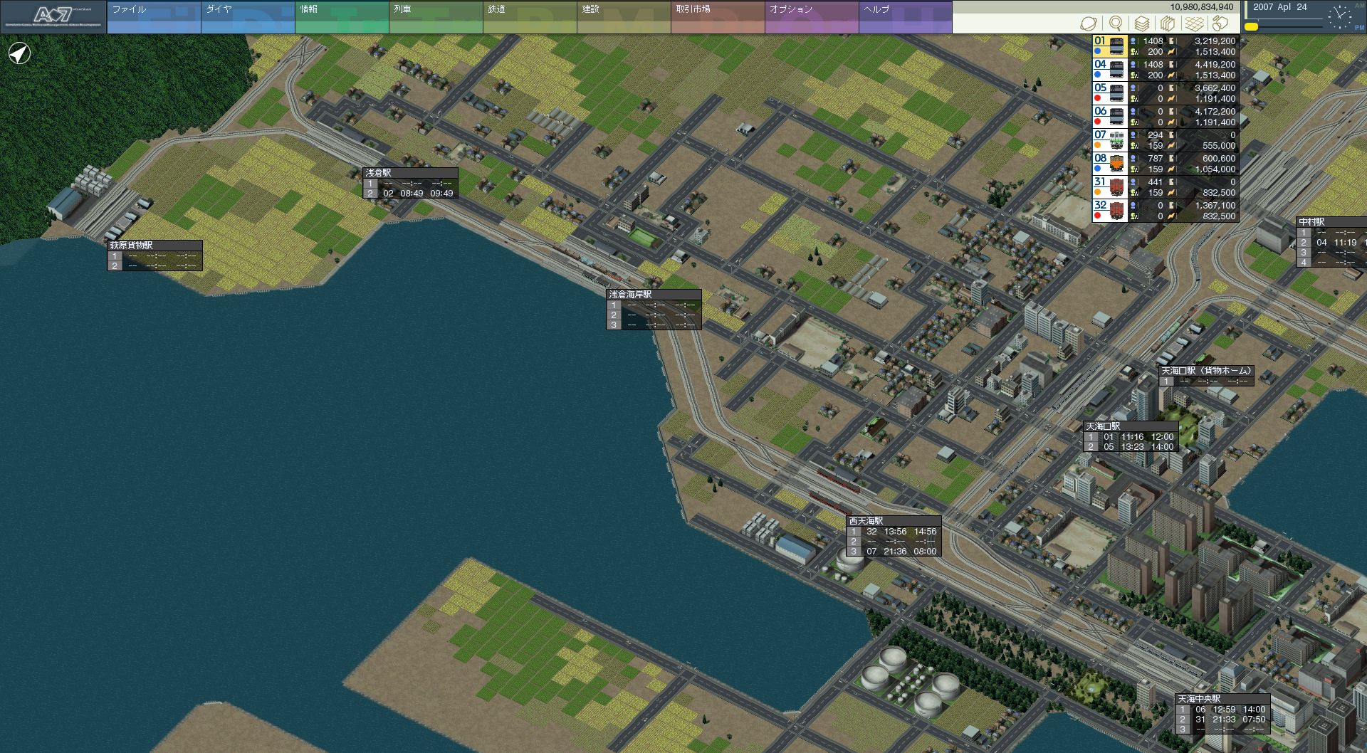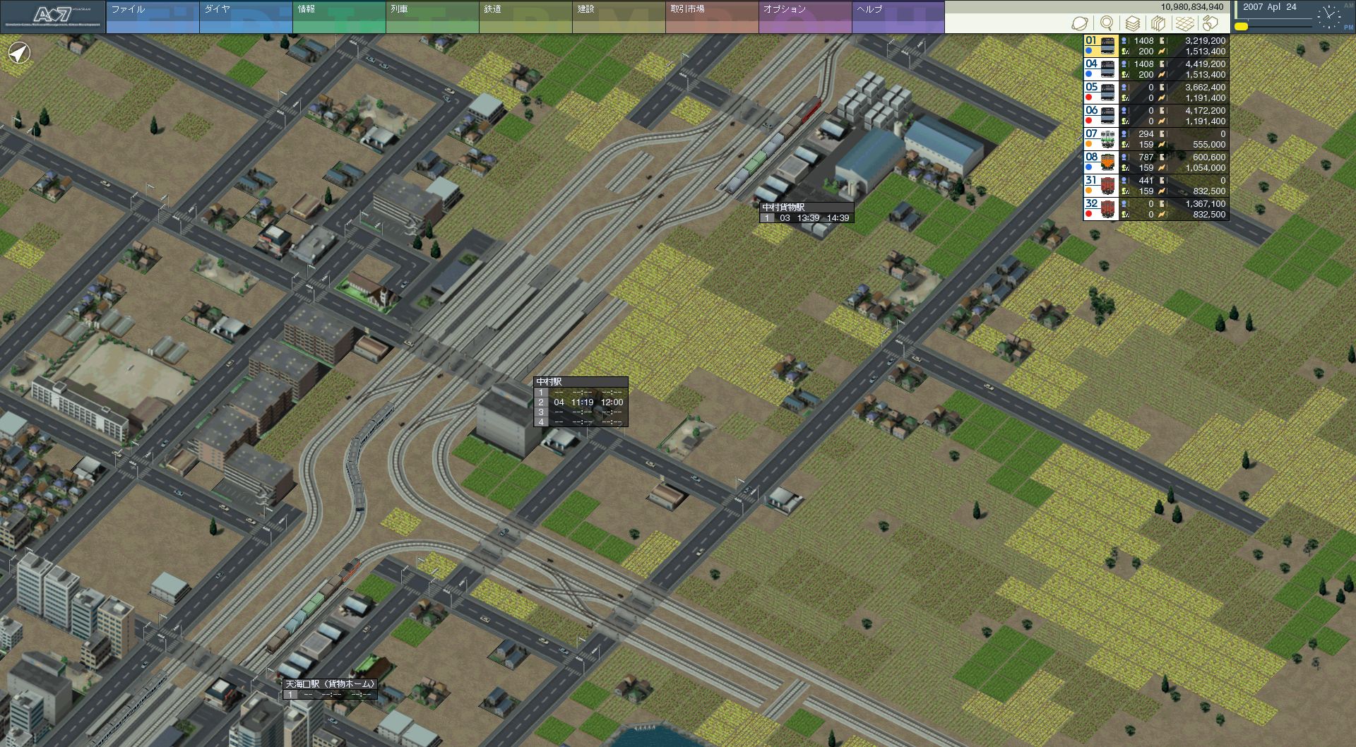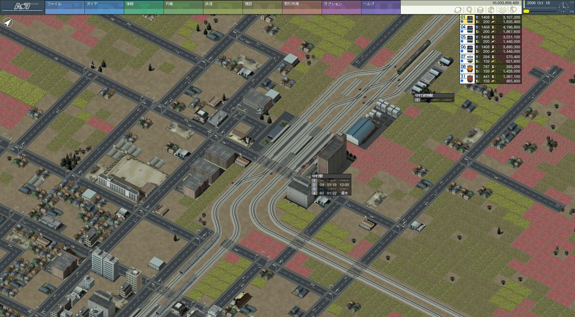 これは完全に失敗。ということで、駅の東側を思い切って整理。 駅間の工場を撤去し、貨物駅の周辺に工場を集積。 まだスペースがあるので、精算が追いつかなければ工場増設も可能です。