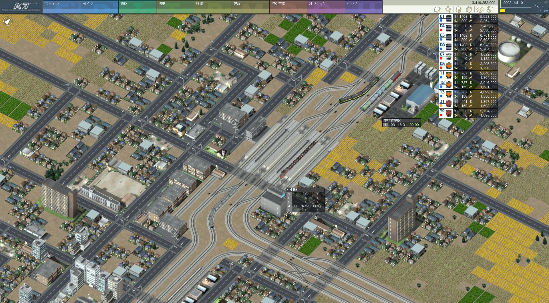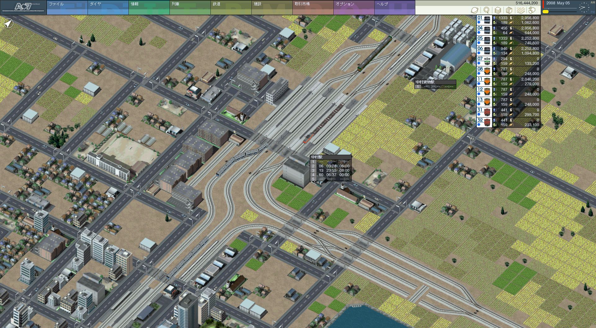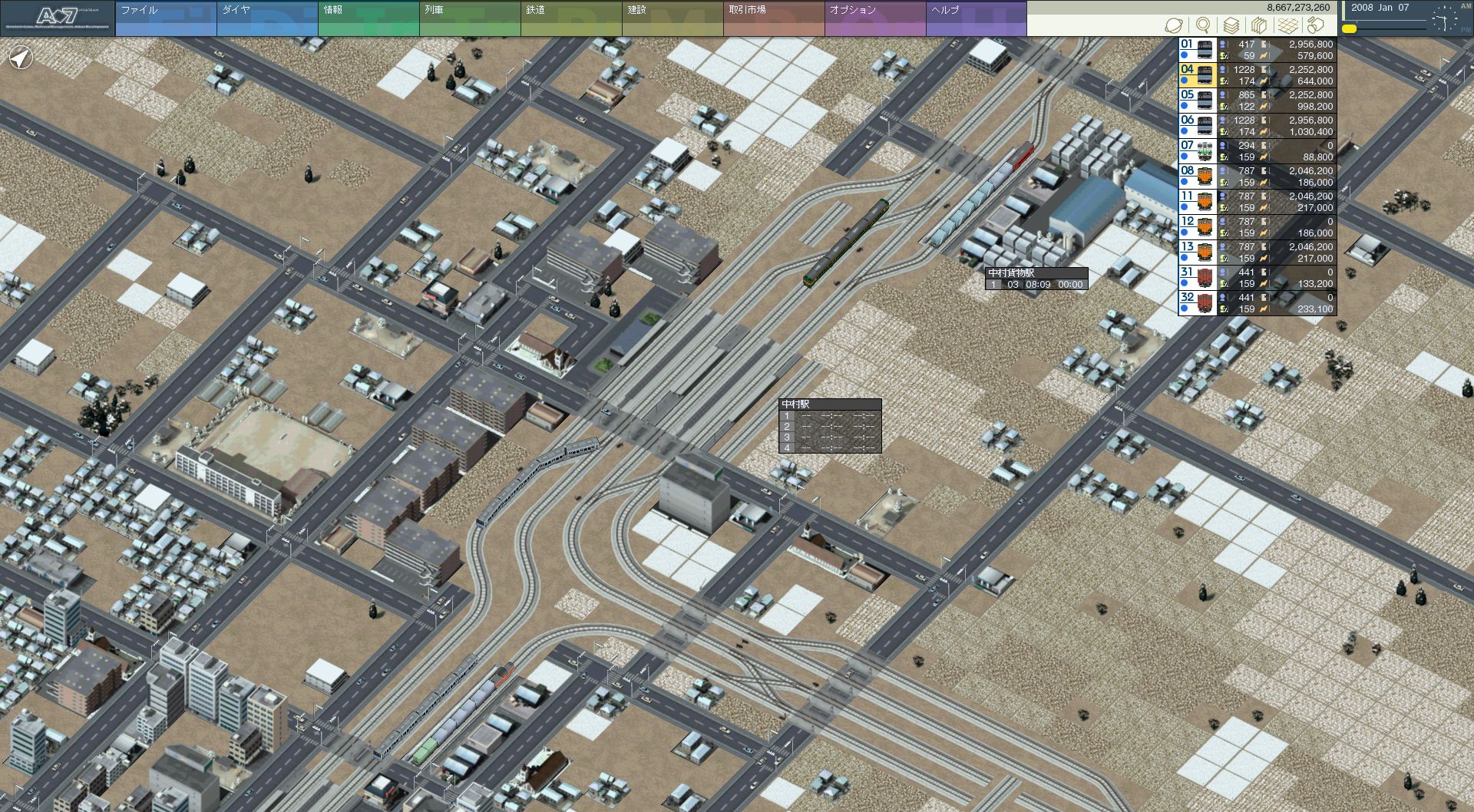 今までの駅が全て田舎駅だったからなんですね・・・田舎駅のまま広げると、 駅周辺の発展が一定段階で止まってしまうらしい。あとは自力で建物を建てる しかない。自分の思いどおりに町並みを作るとか、ローカル線にするとかなら うってつけなんですが、このままでは資金が稼げない!