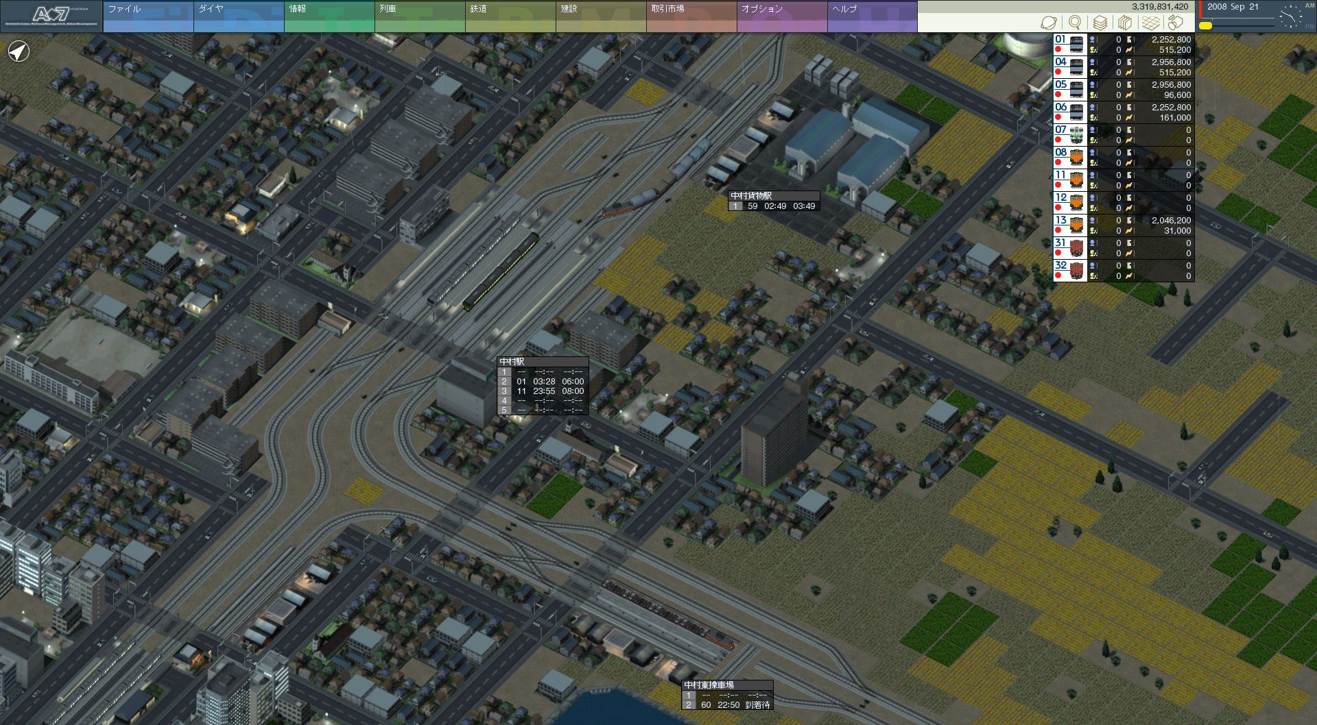そしてダイヤ設定、これが大変。今井へ向かう本線の編成を1編成から4編成に 増強した後なので、都合10編成分の再設定が必要に・・・ 設定が済んでようやく動かしてみると、駅を撤去した影響か、一部の編成が 逆走をはじめてごっつんこでストップえええ。