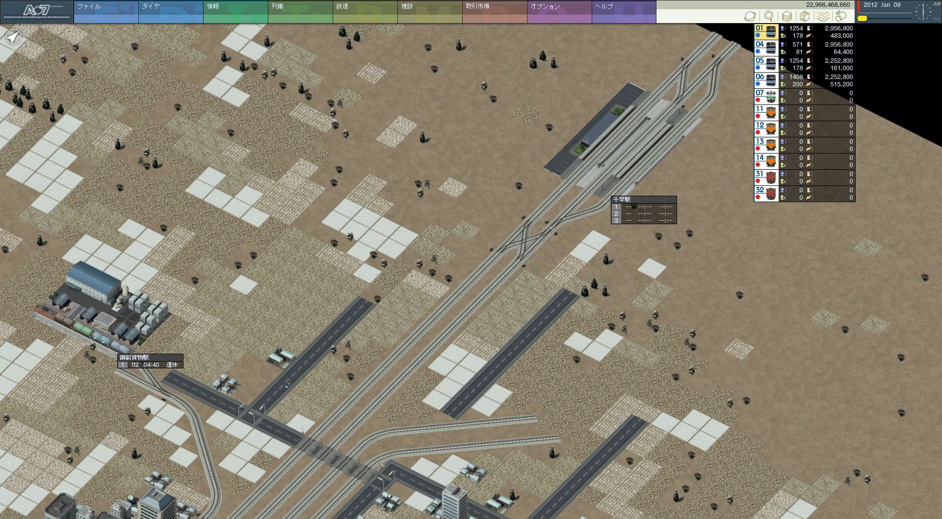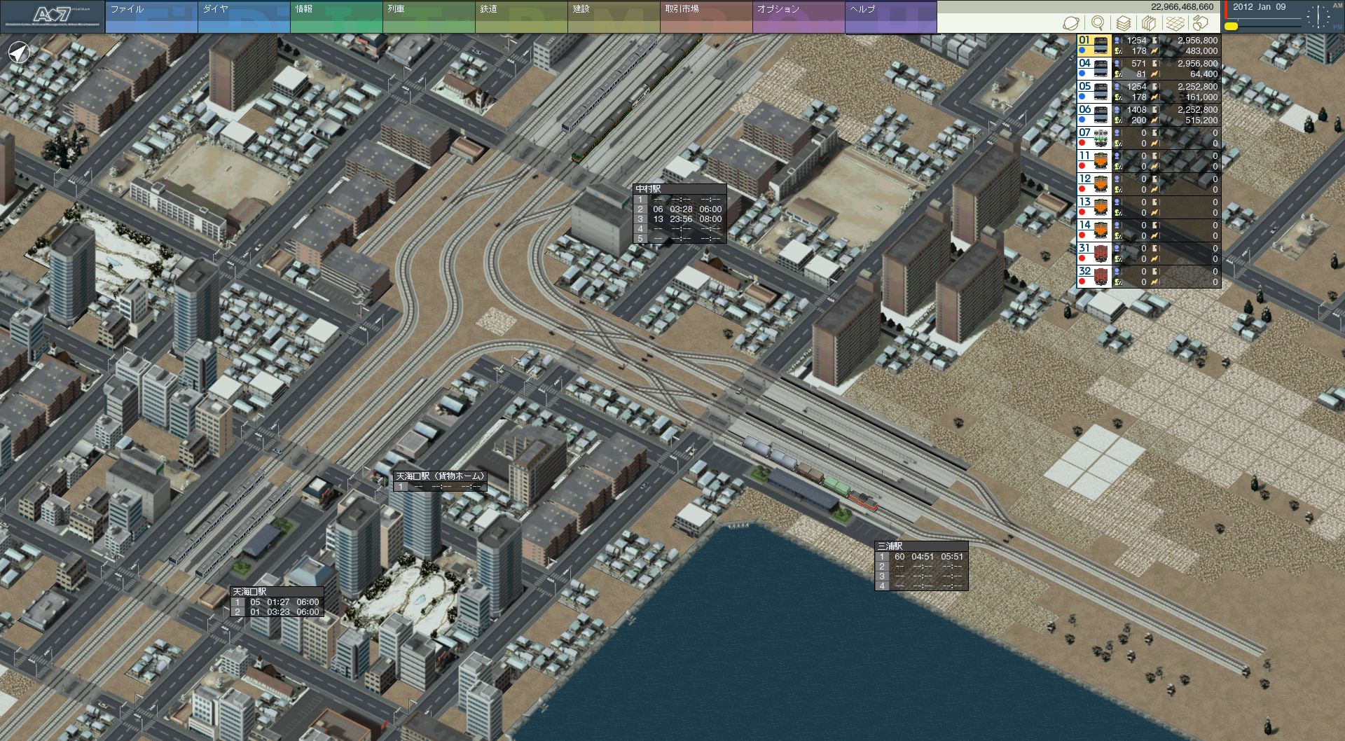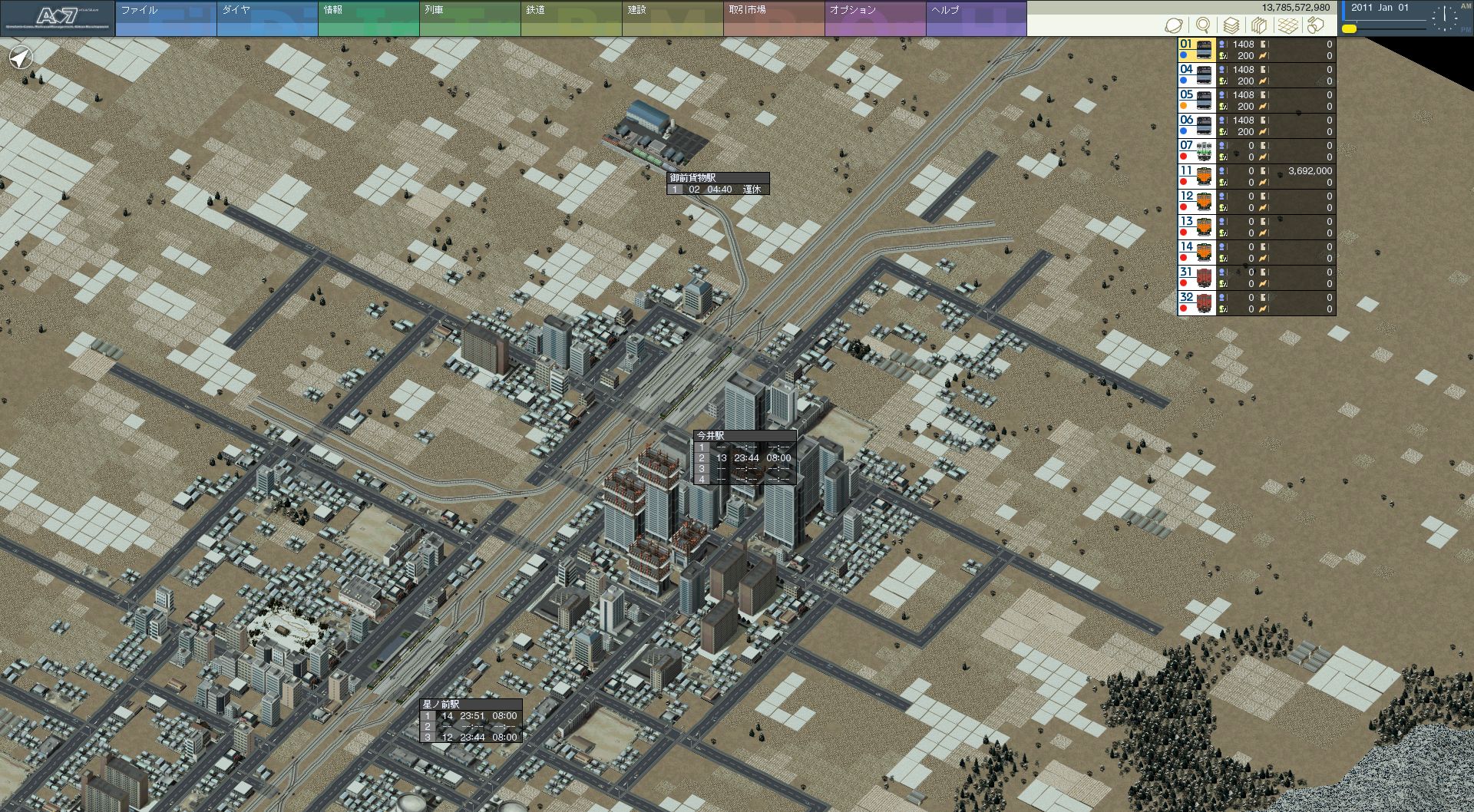 構想では上記以外にもあと3路線あり、また○が◎になったり△が増えたりする こともあるので、その辺は今後の発展次第。ただ、発展させるには先立つものが・・・ 貯めるために寝かせプレイするか、それとも小さく貯めてさっさと使うか、うーむ。