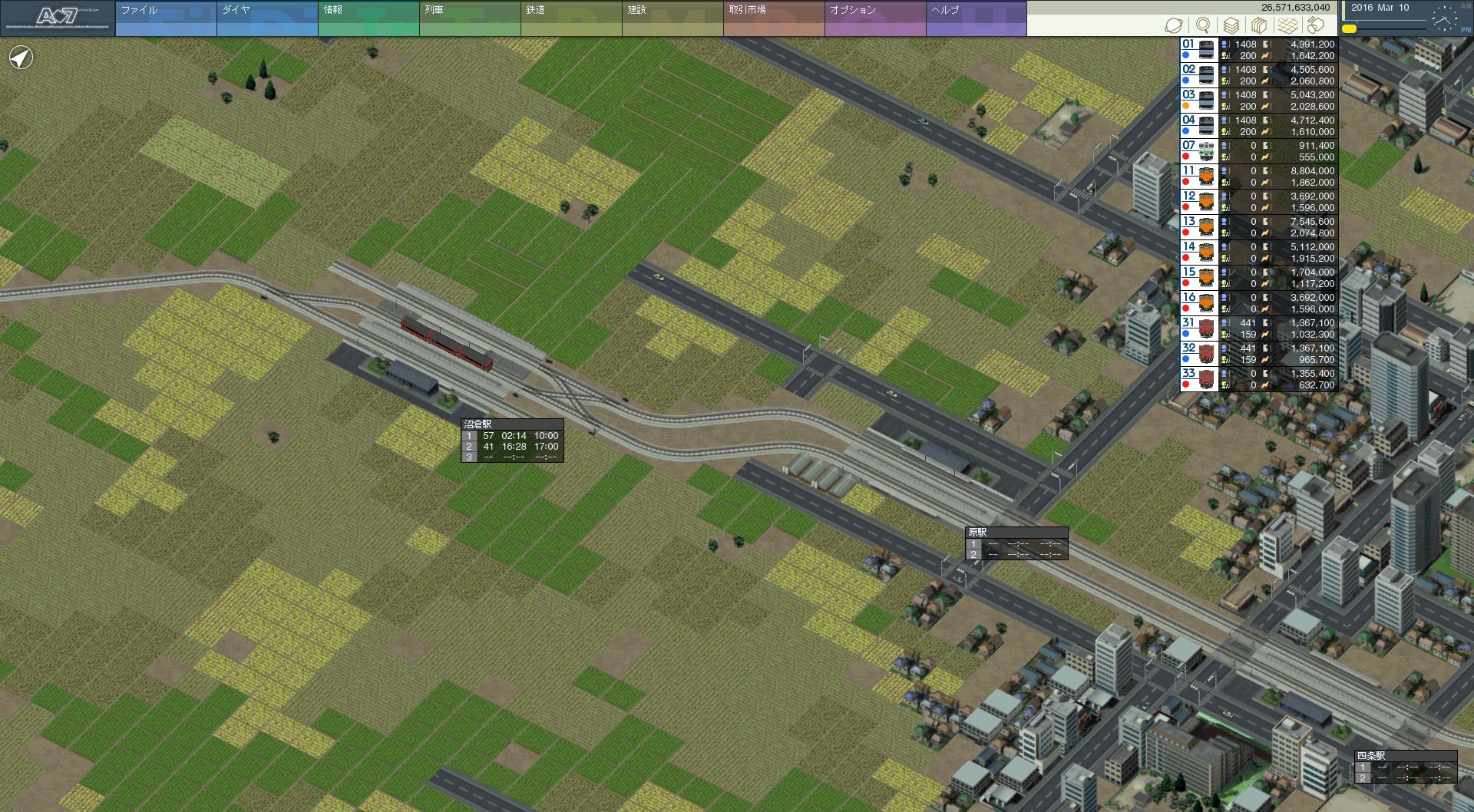 そこで、東への延伸を前に、西側の開発に拍車をかけていこうと思います。 まずは、線路を敷いただけで放置されていた黒井線の順次開通。 特に今井に近い部分は複線区間として設定してあり、また旅客需要が見込めるので、 優先して開通させることにします。