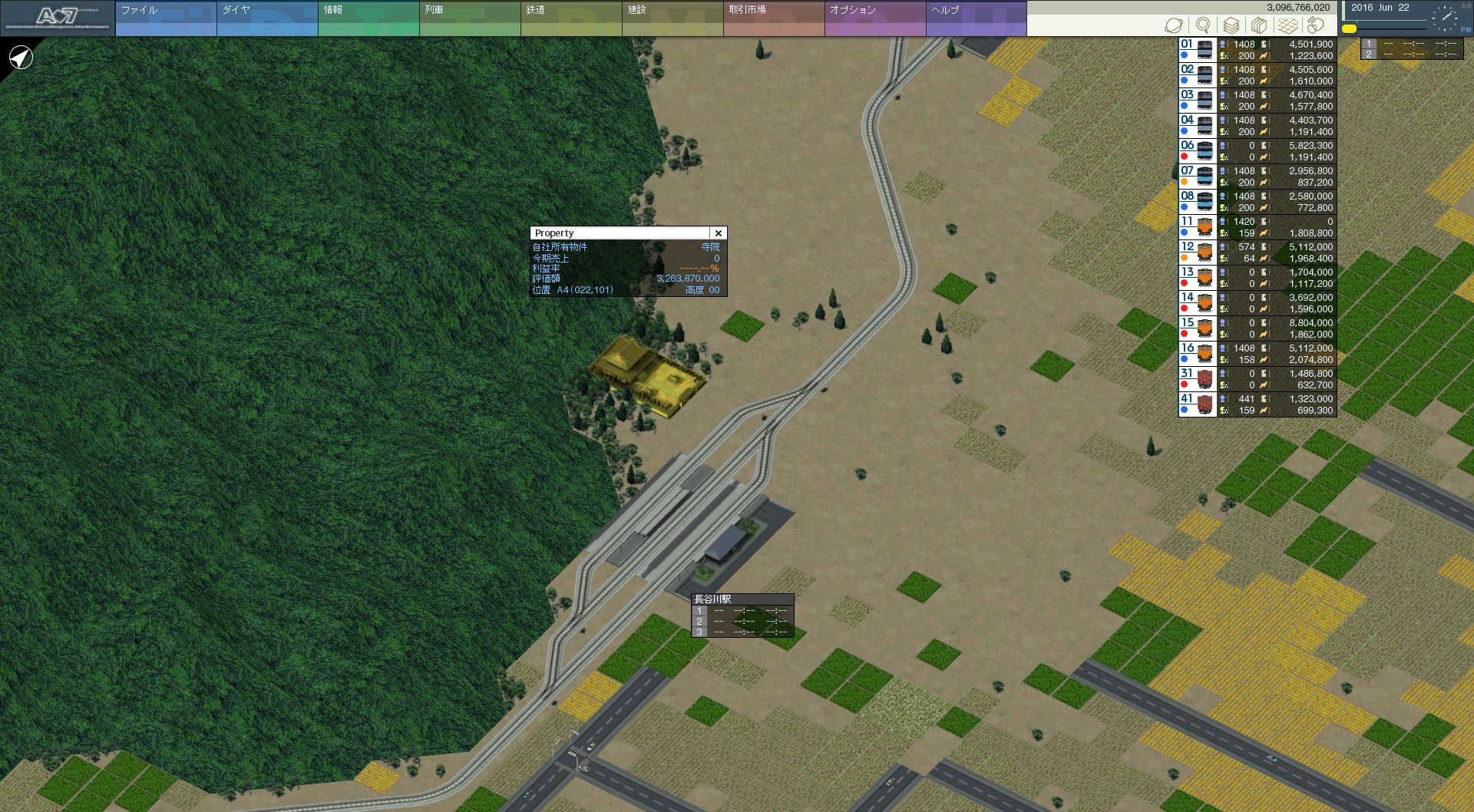 そして西側開発の最後は黒井線の全線開通です。 とりあえず沼倉までは開通していますので、その先に我那覇、長谷川、星井の 3駅を一気に設置。これでだいぶ黒井線らしくなりました。