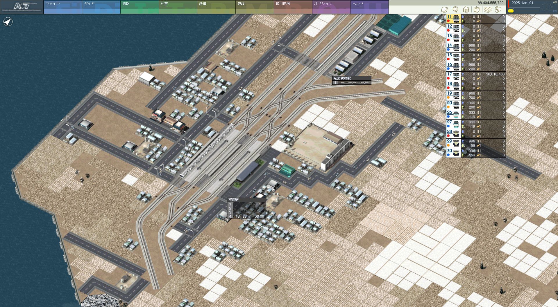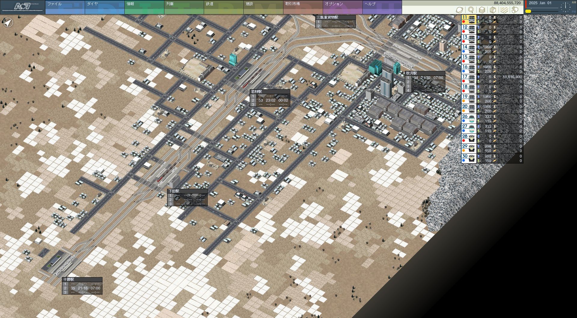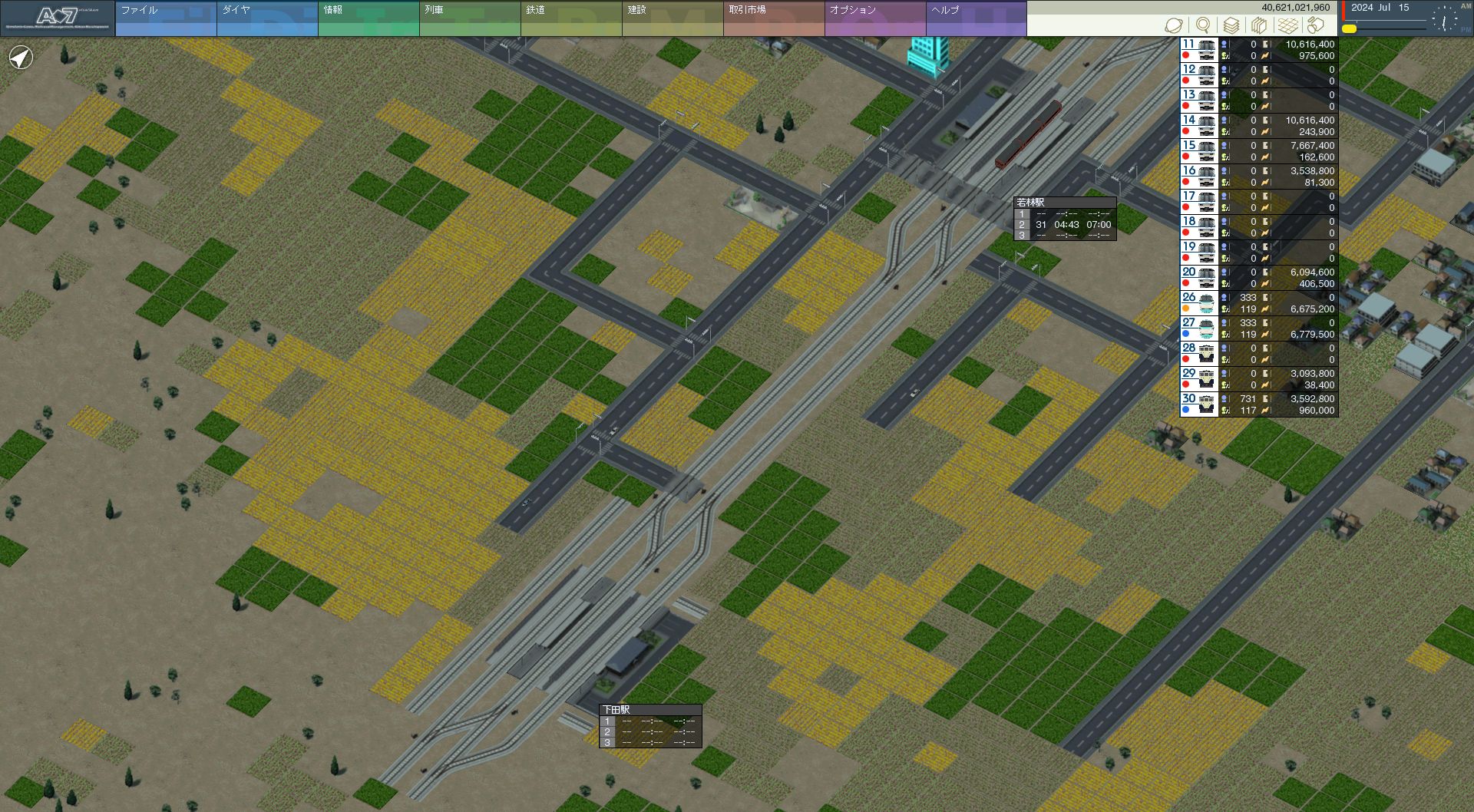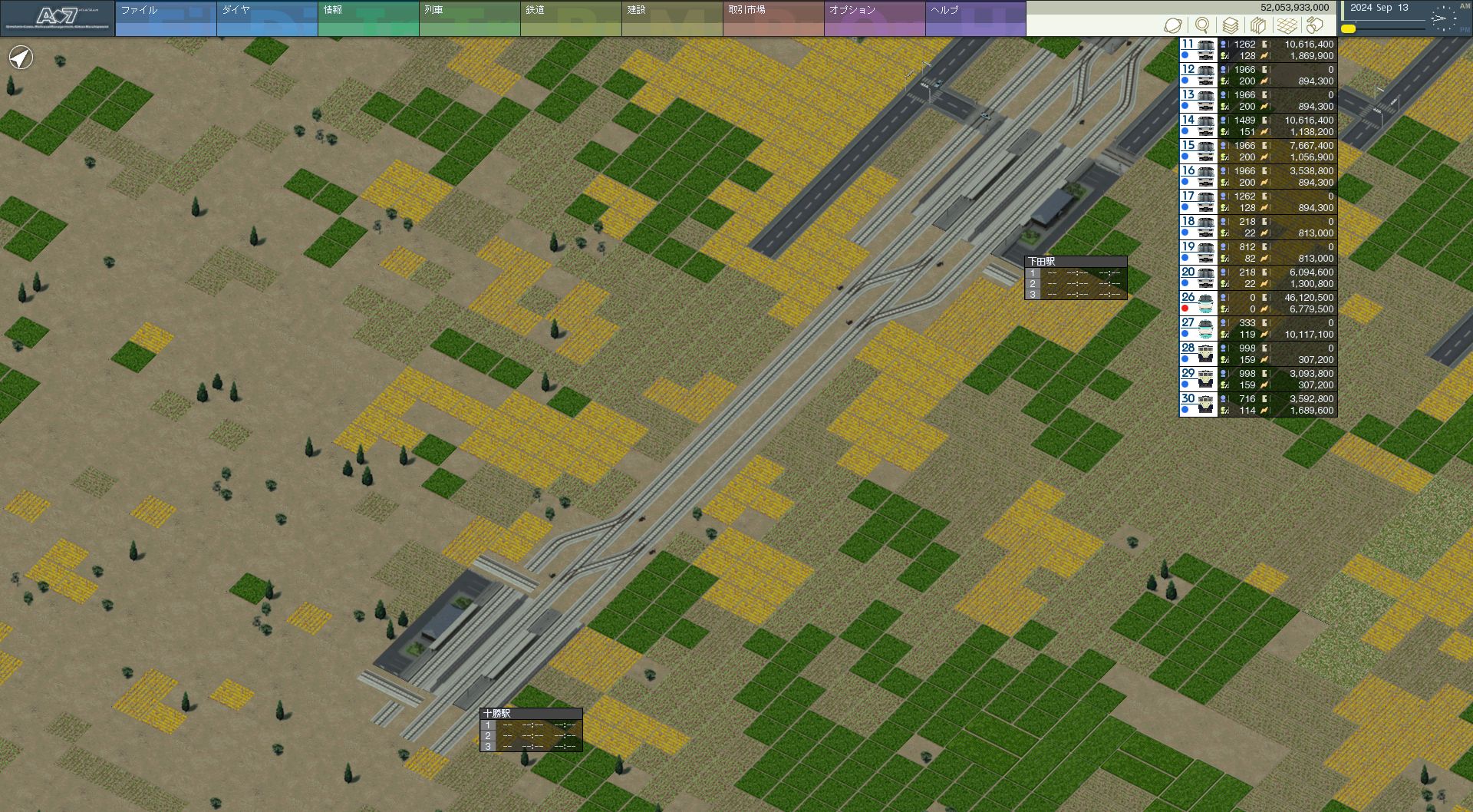 下田も高架駅で設置した割に発展してないのは、資材供給が追いつかないから。 貨物は3編成で毎日輸送が可能な体制にしようかな。