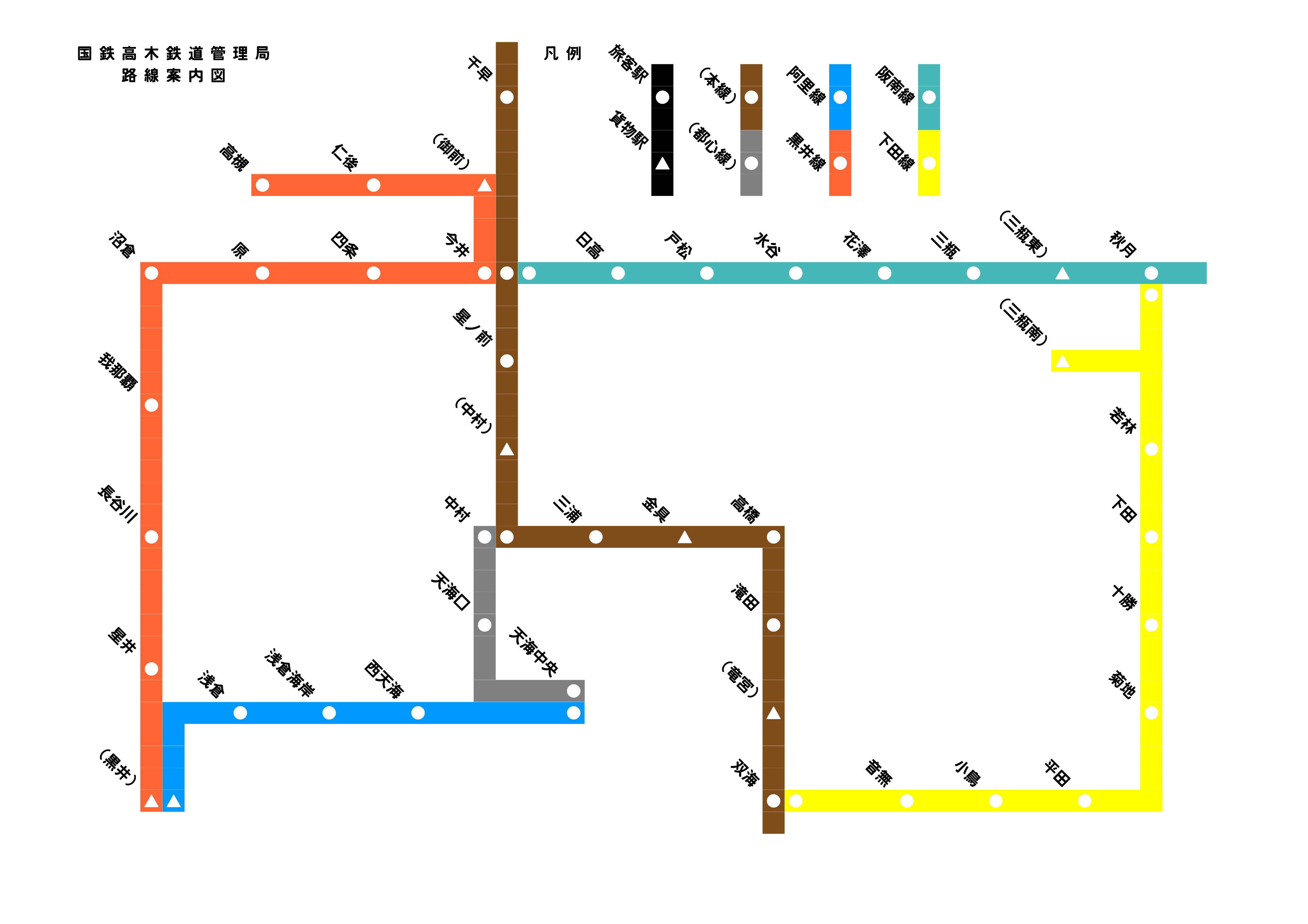 という設定だと、この路線配置でもしっくり来るんじゃないか? 「今井を大津(とか京都)、双海を米原、秋月を敦賀とすると、阪南線は湖西線」と いう説明で分かる人もいるかもしれない。。。