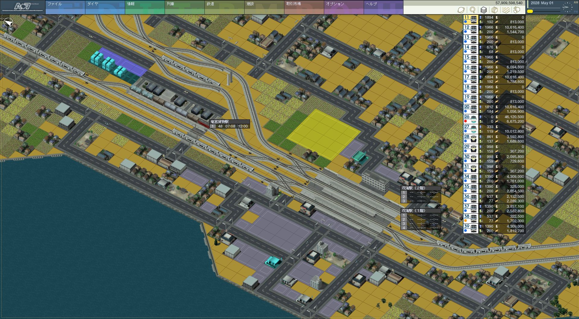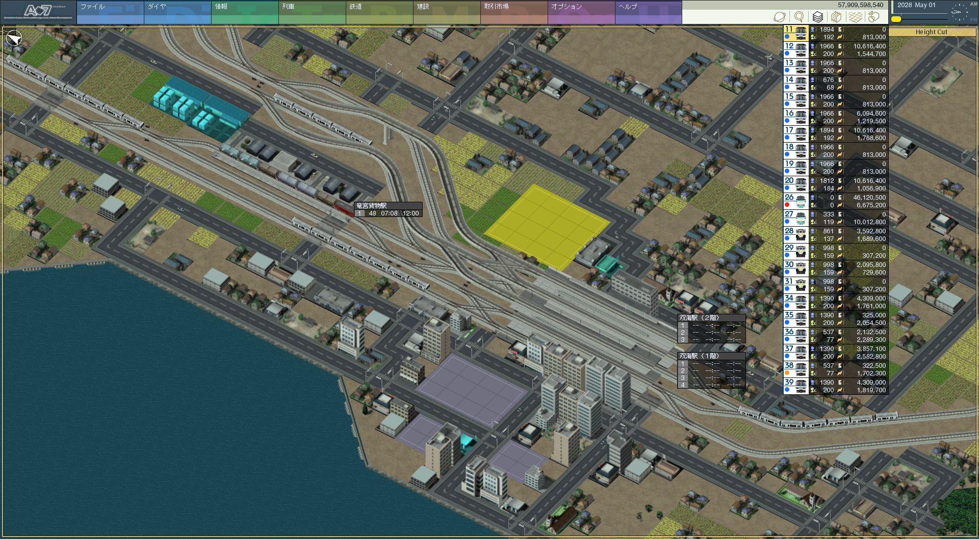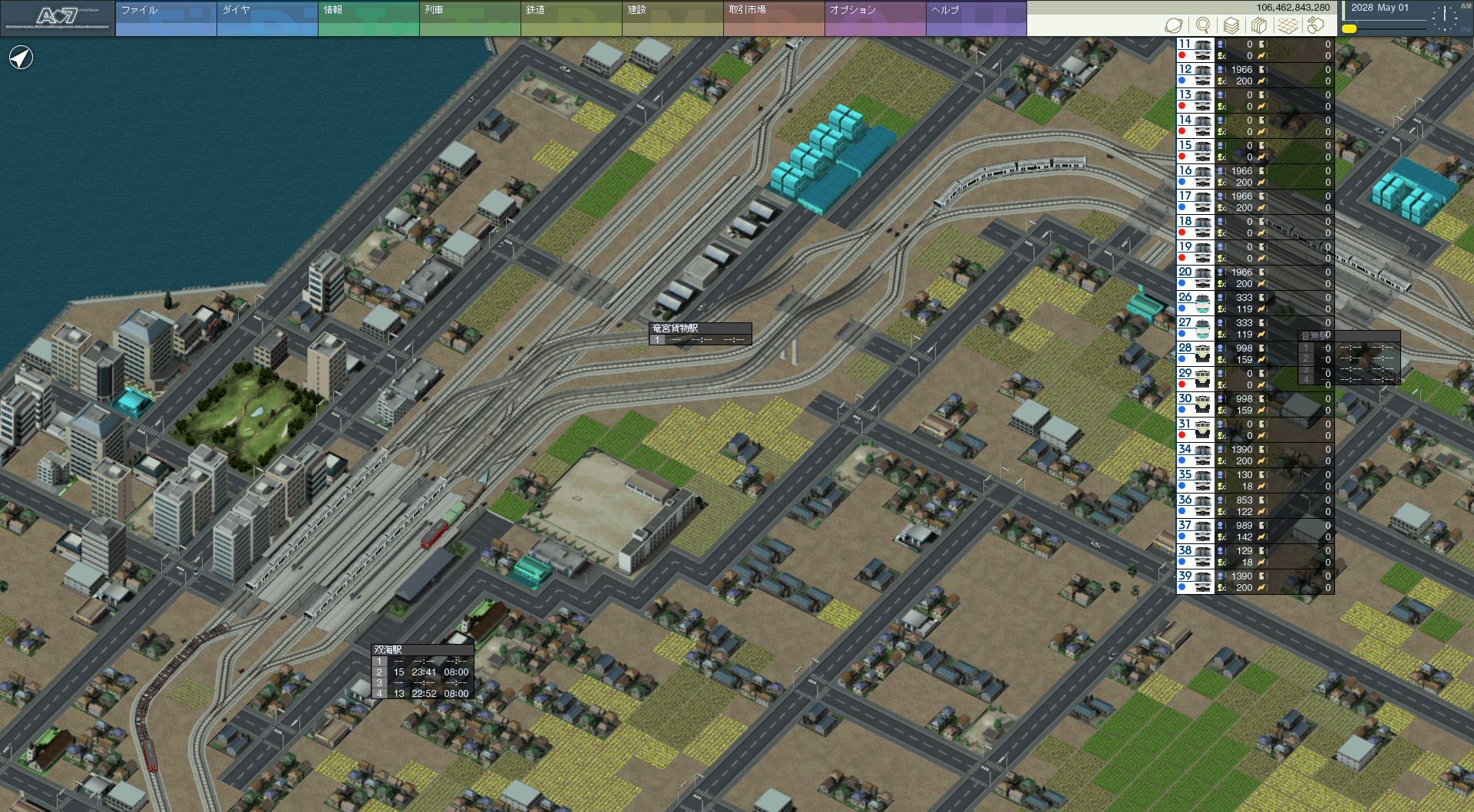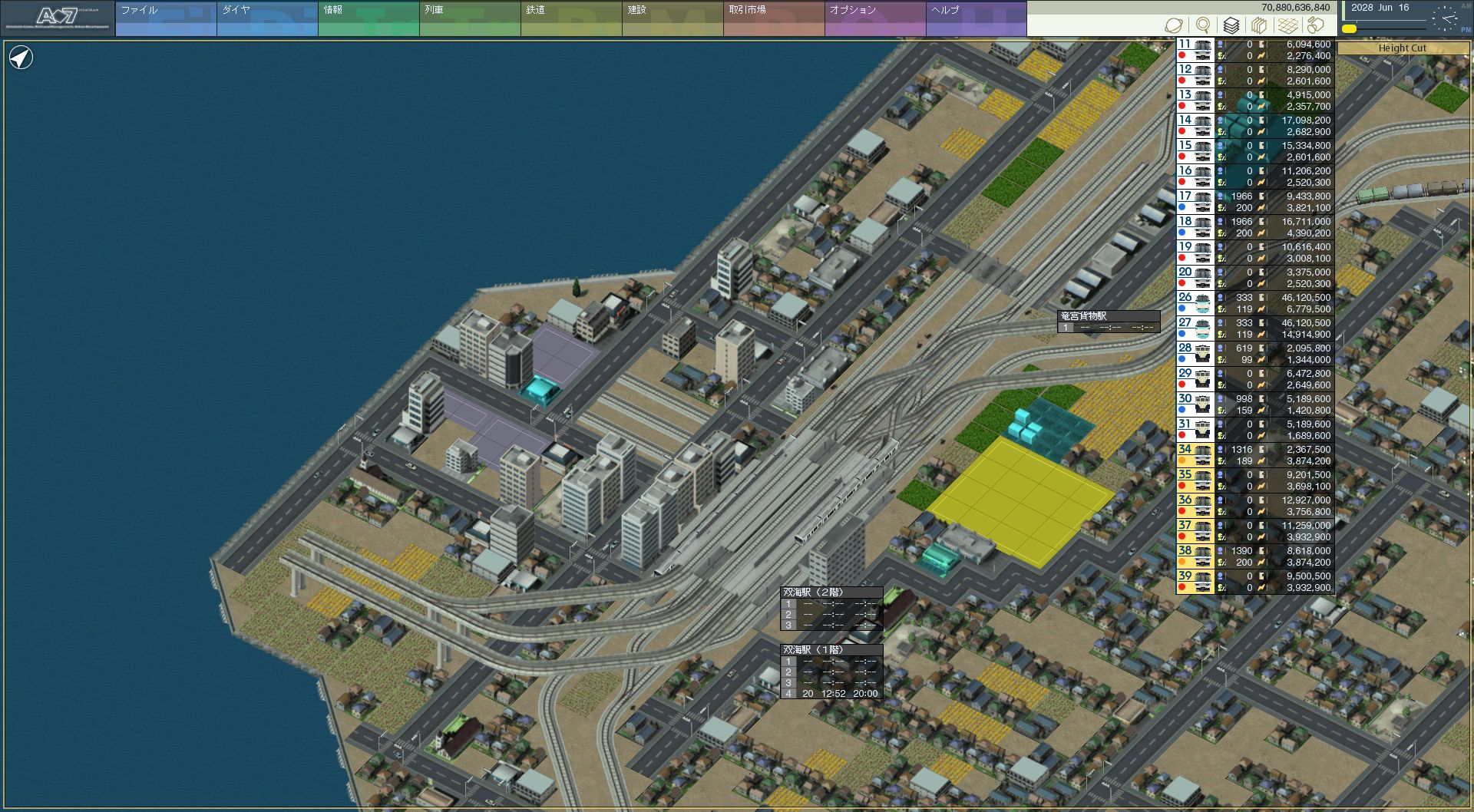 これがどこかというと、天海中央の南東側です。もともとから発展している 地域であり、本来なら天海中央あたりからこの付近に線路を伸ばすところから このマップはスタートするんじゃないかと思うのですが、そんな地域にようやく 延伸です。