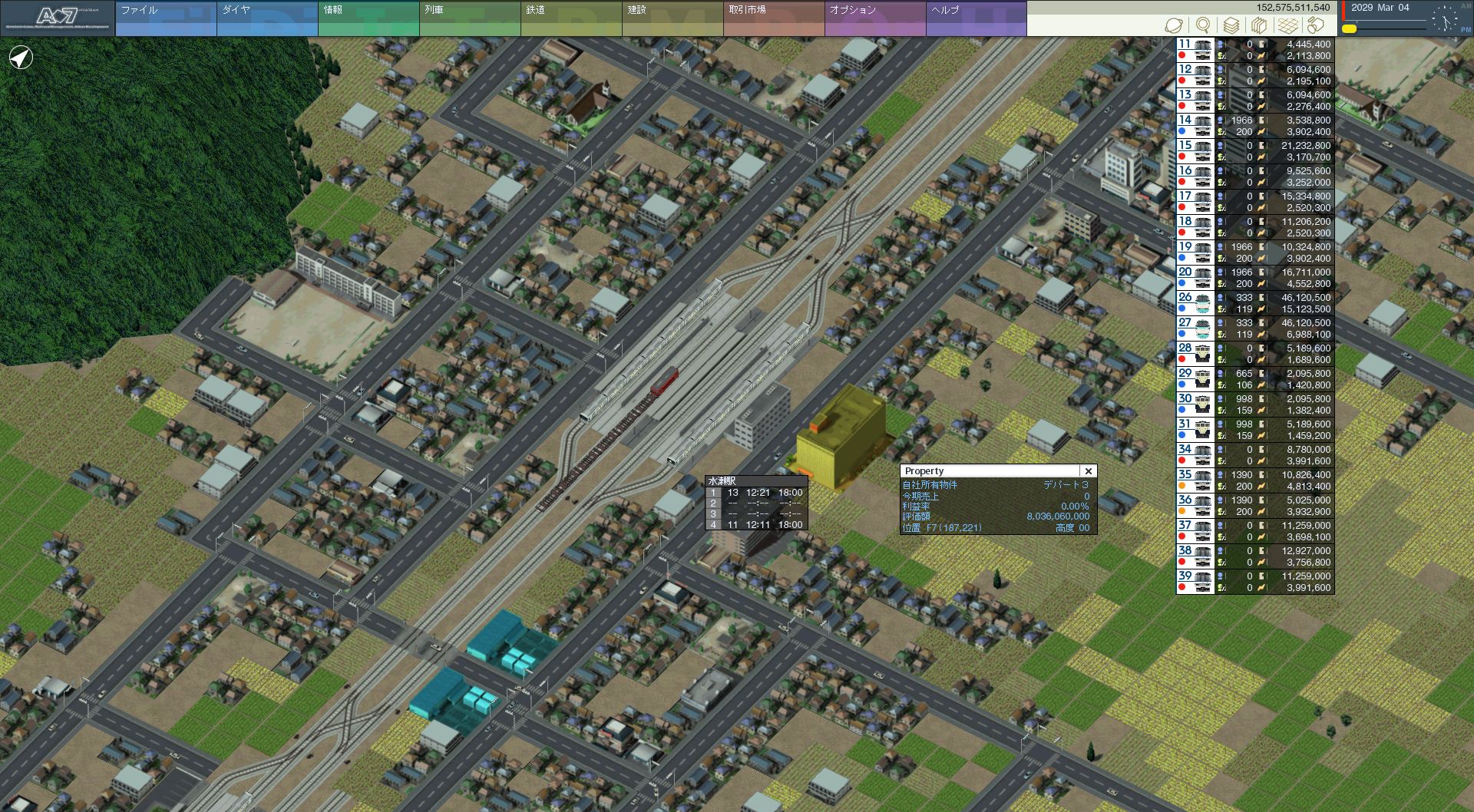 正式駅名は相増駅となりました。春香・・・駅の下にも資材置き場を設置。 駅前の線路は建設用地の確保です。 それにしても、2階のホームから地下の資材置き場には資材を置けないのが 難点ですね・・・。ま、しこたま溜め込んでいるので、たぶん大丈夫でしょう。