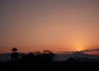 朝焼けにそまった暁雲が漂う。