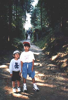 玄賓庵から桧原神社へと至る杉木立の下で。